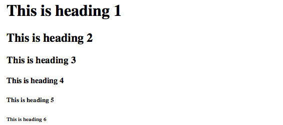 Bất kỳ tài liệu nào cũng đều bắt đầu với một heading. Bạn có thể sử dụng các kích cỡ khác nhau cho heading của bạn. HTML cũng có 6 cỡ khác nhau cho heading, sử dụng các thẻ cơ bản là <h1>, <h2>, <h3>, <h4>, <h5>, và <h6>. Trong khi hiển thị bất cứ một heading nào, các trình duyệt sẽ thêm (để cách) một dòng trước và một dòng sau heading đó.Ví dụ: